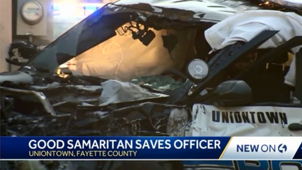 Daylan McLee was at a Fathers' Day event with family when he saw the police officer pinned to the ground by his patrol vehicle following a crash.
