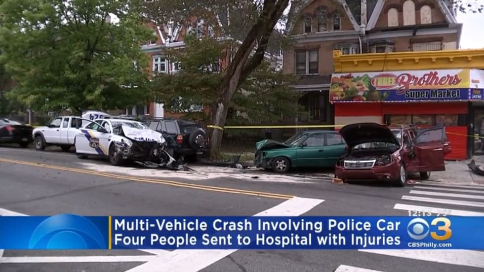 Four people—a woman, two children, and an officer with the Philadelphia Police Department—were injured in a multi-vehicle collision on Monday.