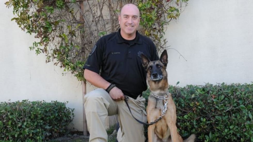 Sgt. Gilbert Cortez and his search dog, Mattie, died Monday in a single-vehicle crash in San Diego County. They were on the way to search inmates for drugs and other contraband at La Cima Fire Camp.