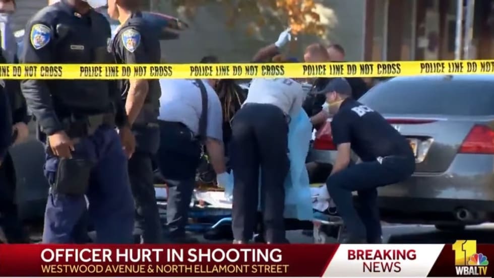 Commissioner Michael Harrison said the shooter was driving in the opposite direction of the officers' car and it was the officer in the driver's seat that returned fire and was wounded. Three other officers were in the car.
