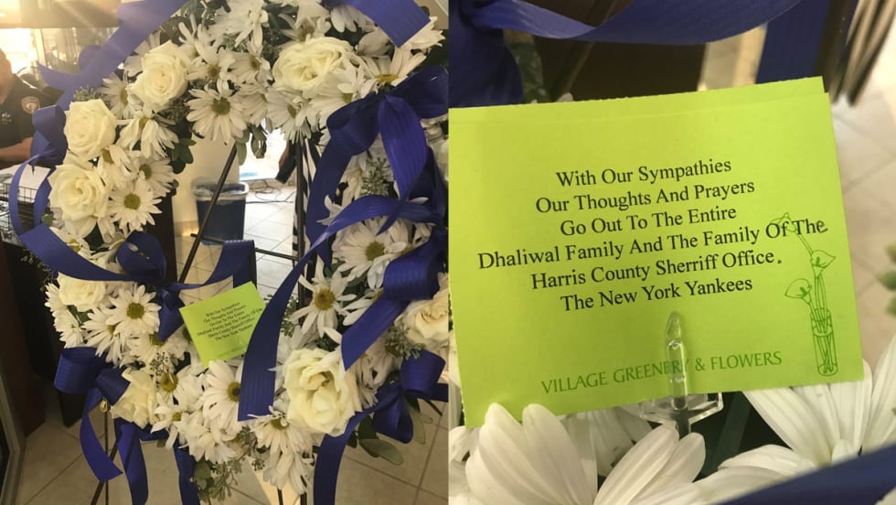 The New York Yankees—while preparing to begin a run at another World Series appearance—took time to send their condolences to the family, friends, and fellow deputies of Dep. Sandeep Dhaliwal with a wreath of flowers.