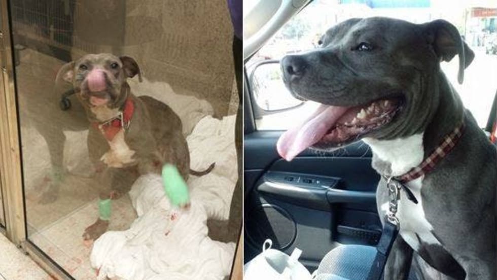 Cleveland police officers were called after witnesses reported a man was standing in the street beating a dog with a belt and a brick and then tried to choke him. But now an officer who responded plans to adopt the injured Pit Bull.