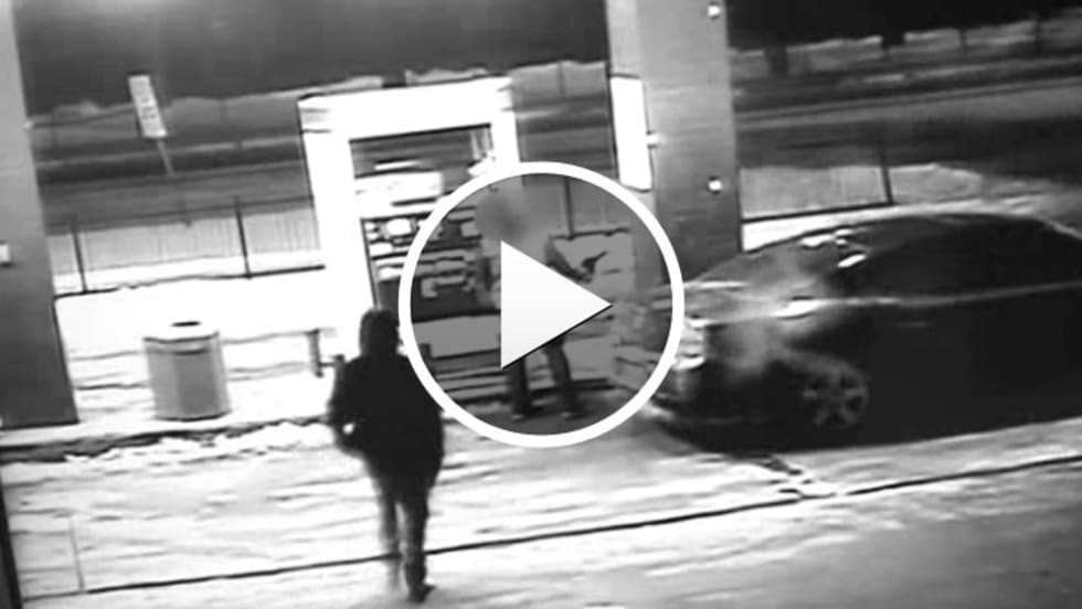 Authorities say a surveillance tape shows that as the sergeant began pumping fuel into his vehicle, three males surrounded him and demanded money.