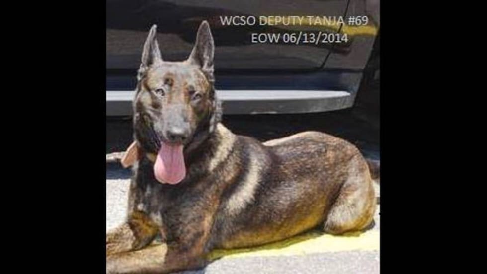 A Georgia police K-9 was shot and killed, and her handler was injured on Friday night while going through a front door after a suspect.
