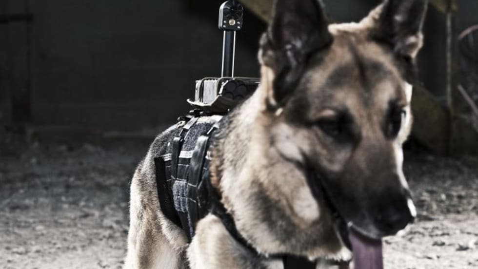 Tactical Electronics' K-9 mounted camera (K-9MC4) is designed to transmit video to the handler. A built-in mini DVR records audio and video of operations directly to a 16GB SD card for post-operation review and archiving.