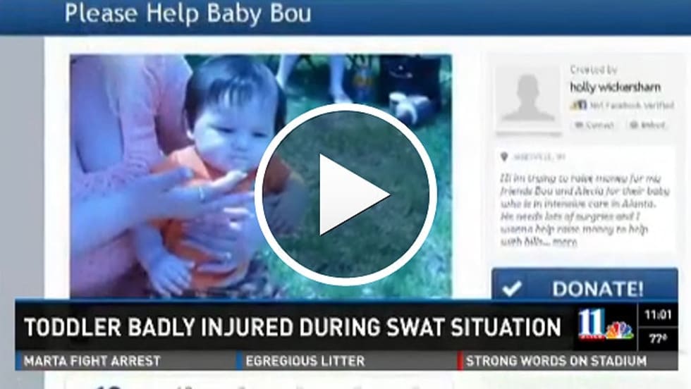 The 19-month-old child is now in Grady Hospital's burn unit in Atlanta. The raid in which he was injured was at a house just north of Cornelia, early Wednesday morning.