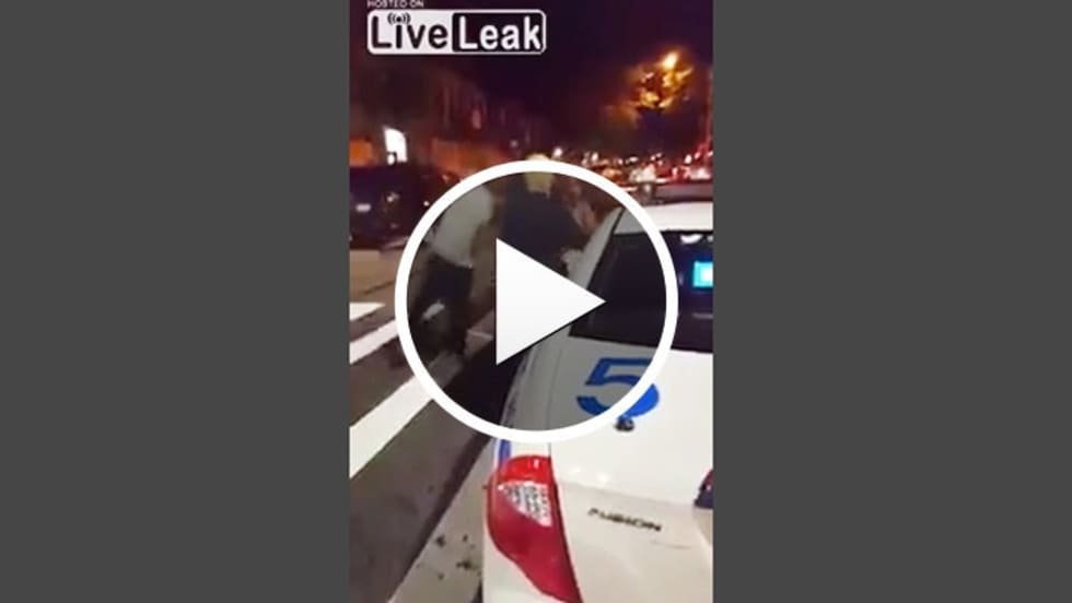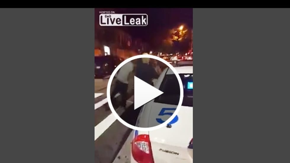 "That’s my sister," the man, identified by cops as Terrell Mitchell, 26, can be heard yelling before he sucker punches the male officer twice in the back of the head, knocking off his glasses.