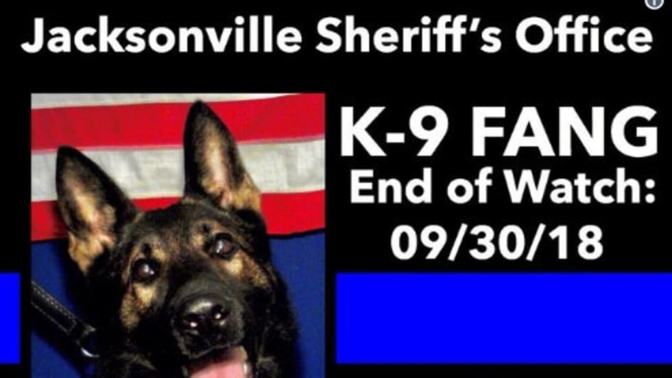 K-9 Fang was shot and killed when officers responded to a call of an armed carjacking taking place just before 0320 hours on Sunday.
