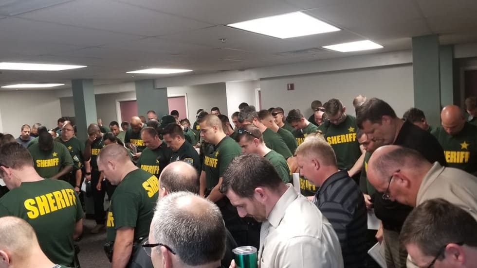The Leon County (FL) Sheriff's Office posted a picture to Facebook showing deputies bowing their heads in prayer as they braced for the imminent landfall of Hurricane Michael on October 9, 2018.