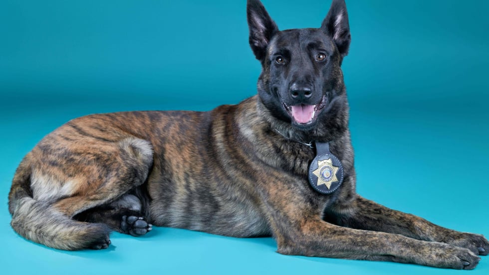 "So when it came time for [Bolo] to go back that day, they got him in his cage, and he kind of dropped his head and whimpered, and everybody's heart melted, and we decided to adopt him," Chief Jason Newby says.