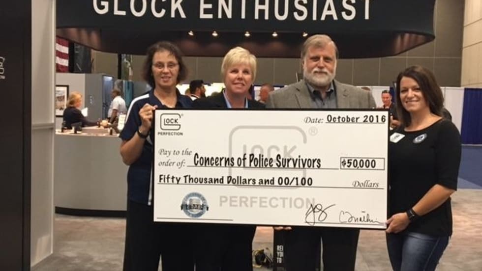 Glock Inc., donated $50,000 and a commemorative 30th Anniversary Pistol for auction to Concerns Of Police Survivors (C.O.P.S.) at the annual IACP conference in San Diego, CA.