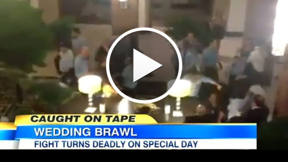 A raucous brawl between attendees of two weddings left one dead and three in handcuffs Sunday, as at least a half dozen Philadelphia Police officers were needed to defuse the situation.