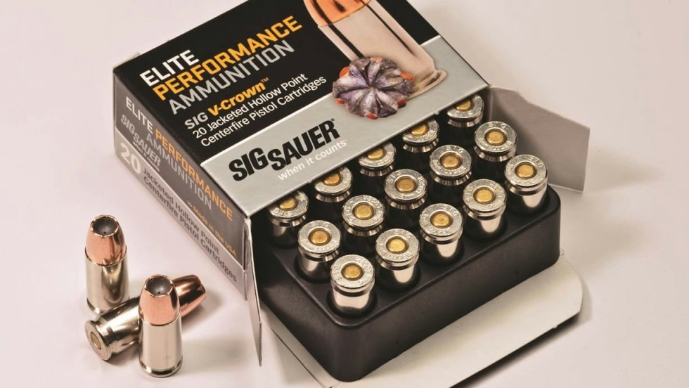 SIG Sauer V-Crown ammunition features a proprietary stacked hollow point bullet for consistent, controlled expansion and optimal terminal performance.