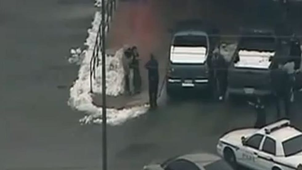 After the suspect slipped, the hostage ran and six officers opened fire, creating a cross-fire that resulted in one officer being struck in the leg by friendly fire.