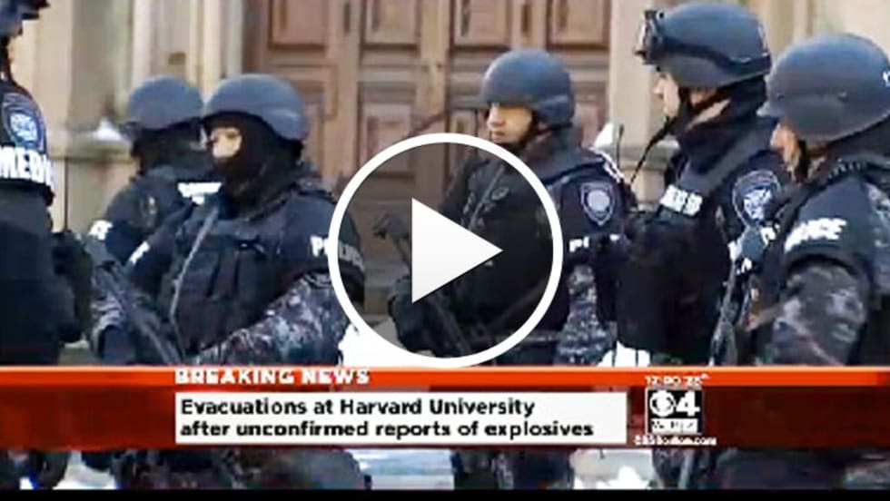 Harvard University evacuated four buildings on campus this morning after receiving unconfirmed reports of explosives.