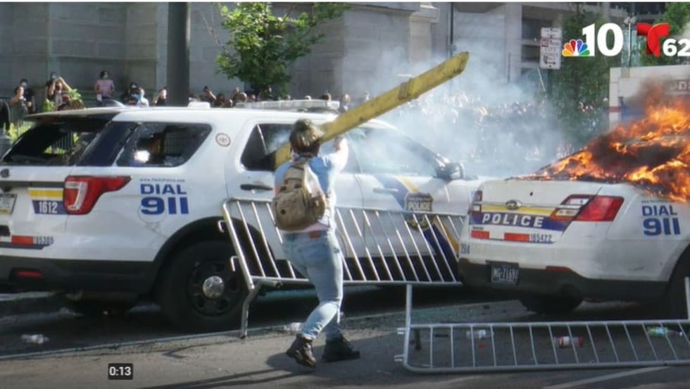 A Philadelphia woman has been charged by federal authorities with setting fire to two police cars during protests over the death of George Floyd after investigators examined an online "Etsy" review and images of the woman's tattoo.