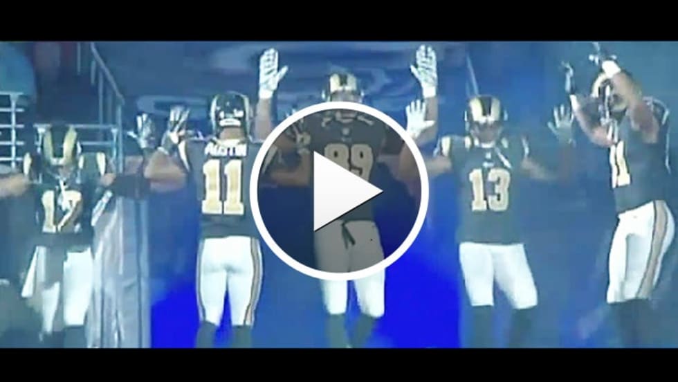 A St. Louis police officers' group called on the NFL to punish five Rams players who stood with their hands raised before trotting onto the field for pregame introductions Sunday.