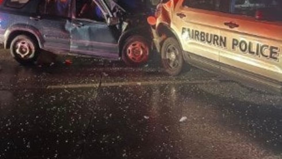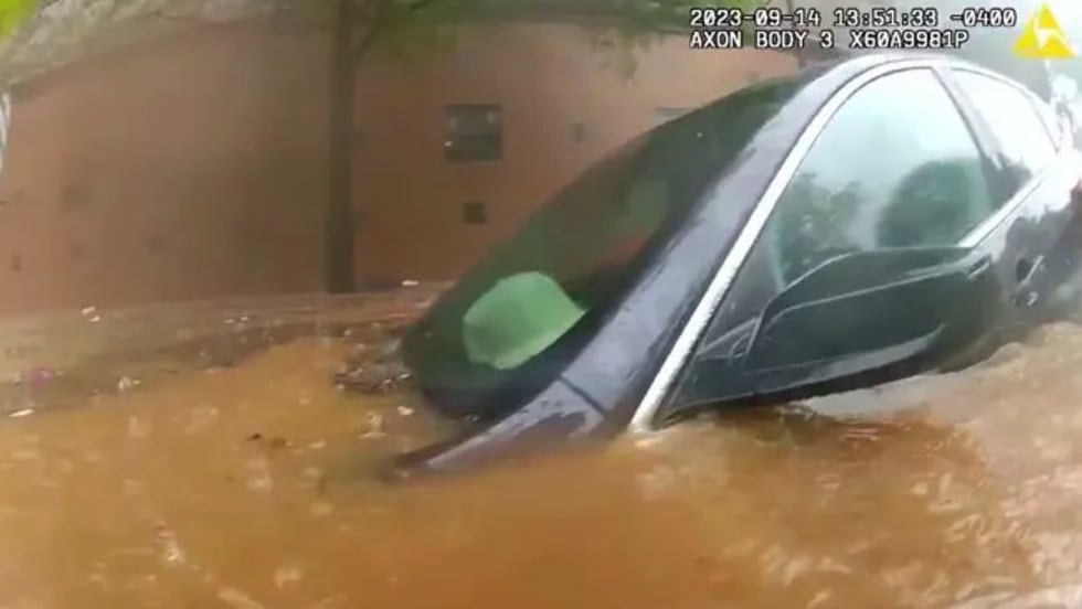 One police officer came upon major flooding on Peachtree Street near Atlanta's Public Safety Headquarters and saw a partially submerged sedan in the middle of the road.