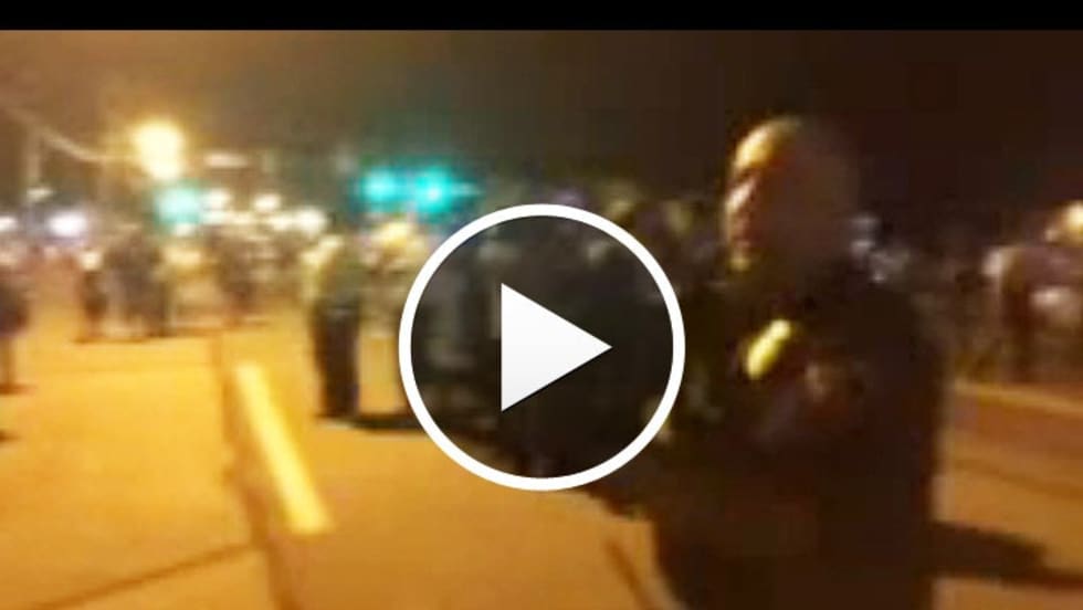 A police officer who pointed a rifle at people in Ferguson on Tuesday night and threatened to kill them has been relieved of duty and suspended indefinitely, authorities said.