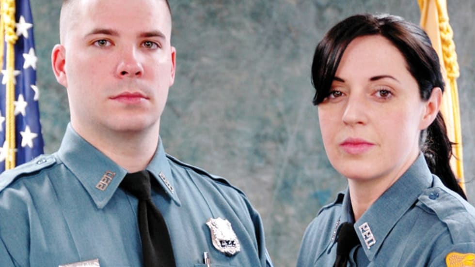 Officers Rachel Morgan and Ryan Hayo of the Paramus (N.J.) Police Department have been named officers of the month for July by the National Law Enforcement Officers Memorial Fund. The officers returned fired at a driver who began shooting at Morgan from his car lodged in a snow bank.