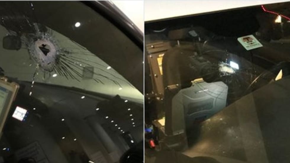 The officer was wounded by flying glass, but was not shot, police said. The passenger door was also shot, police said.