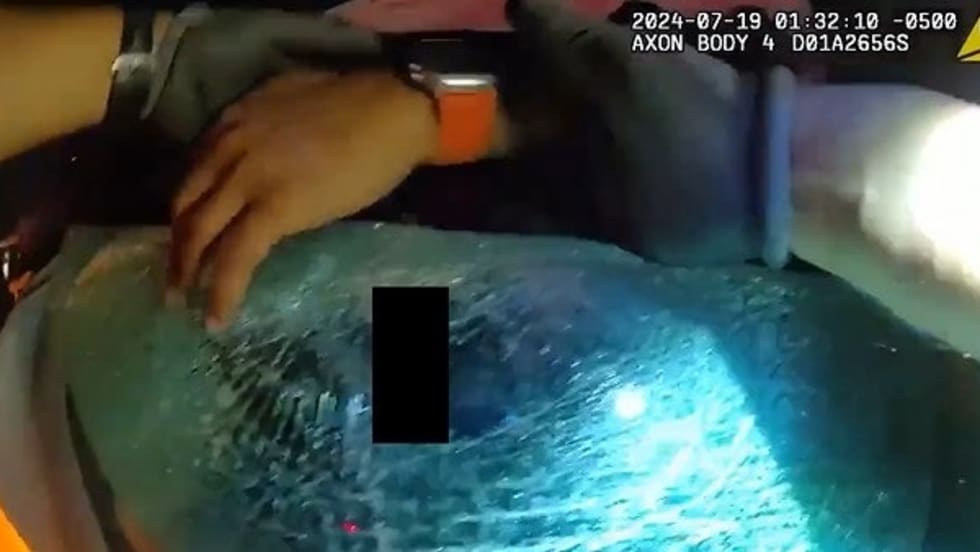 Officers first tried to put out the fire with a fire extinguisher, but when it became clear the fire was not going to go out, the officers decided to bust out the driver's side window.