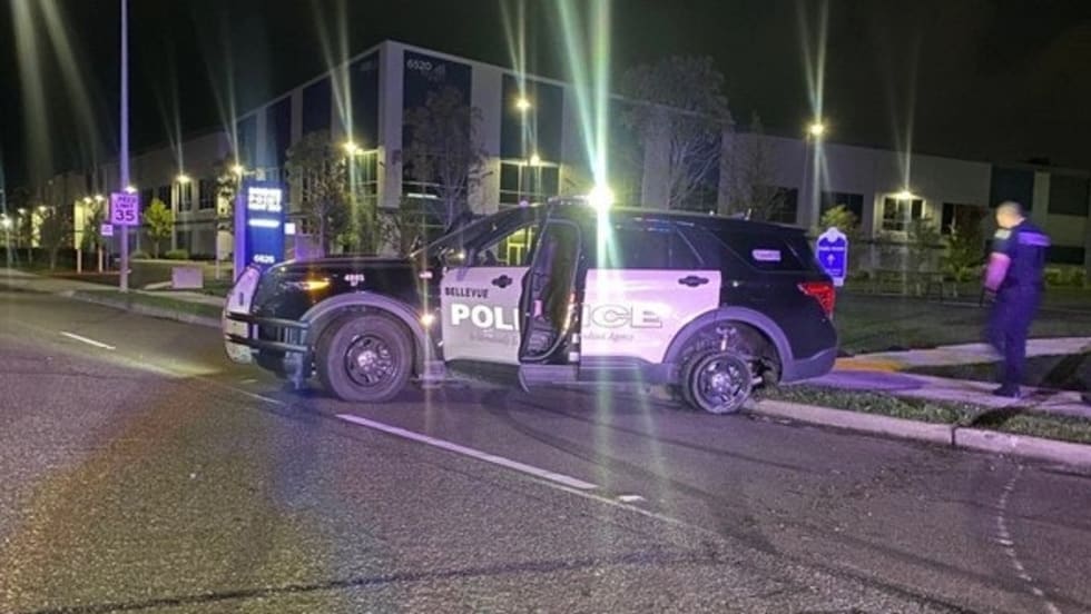 The chase ended when officers used spikes to deflate the stolen patrol vehicle’s tires and a Tukwila officer performed a PIT maneuver.