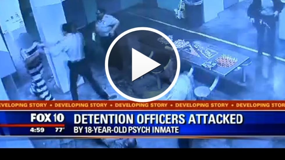 An 18-year-old psych inmate attacked four officers at the Lower Buckeye Jail, sending three officers to the hospital and knocking one unconscious, according to the Maricopa County (Ariz.) Sheriff's Office.