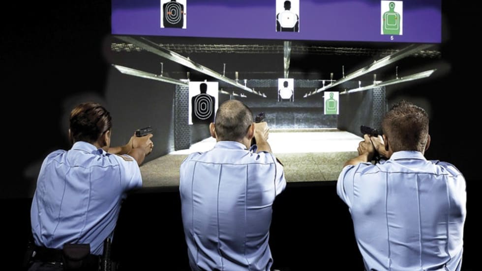 Created using Meggitt Training Systems’ products and design assistance, the Suwanee (Ga.) PD training center is complete with a four-lane indoor shooting range, an academic classroom, and a training room that also serves as a virtual firearms trainer.