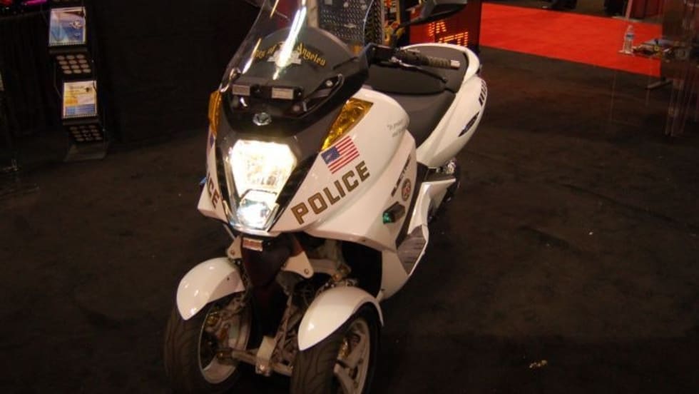 The Los Angeles Police Department is now field-testing the Vectrix VX-3, a unique three-wheeled electric patrol vehicle that will be available in the spring. The LAPD is testing the scooter-type vehicle at the city's LA Live entertainment complex that includes Staples Center. The vehicle was debuted at the 2010 COPSWEST trade show. Photos by Paul Clinton.