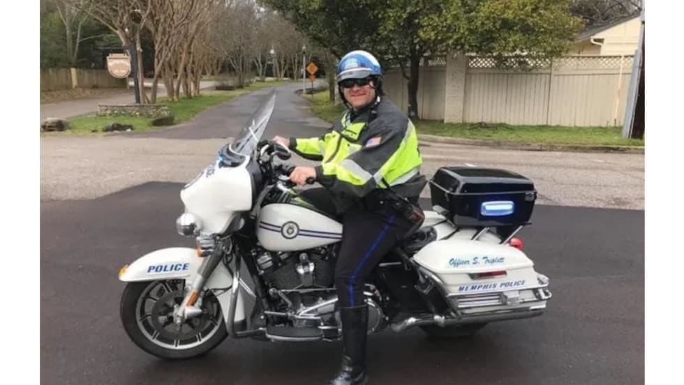 Memphis PD said on Twitter that the driver of a car made a left turn in front of Officer Scotty Triplett and the motor officer collided with the side of the car.