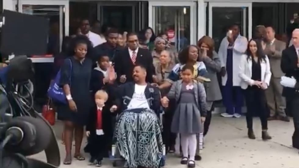An officer with the New York Police Department who was reportedly violently hit in the head with a metal chair during a deadly fight has emerged from a medically induced coma and has been released from the hospital.