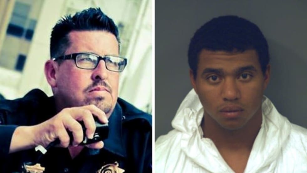 Several uniformed and plainclothes officers tried to box his car in to arrest him, and the man jumped out of the car and fired a revolver at police, striking the one officer. He then ran across a parking lot.
