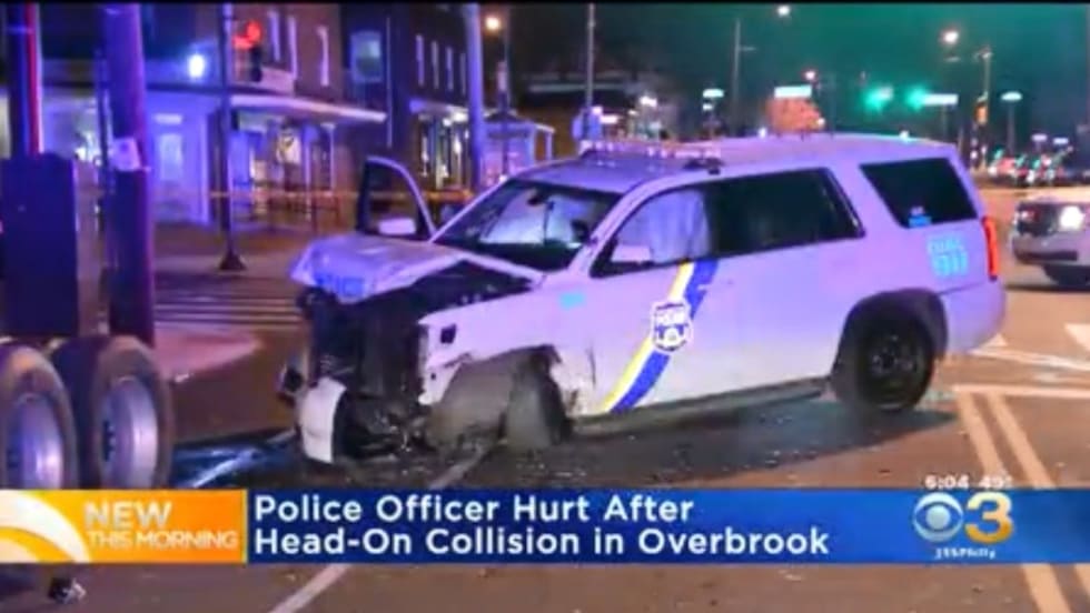 An officer with the Philadelphia Police Department was injured in a head-on collision with another vehicle shortly before midnight on Thursday.