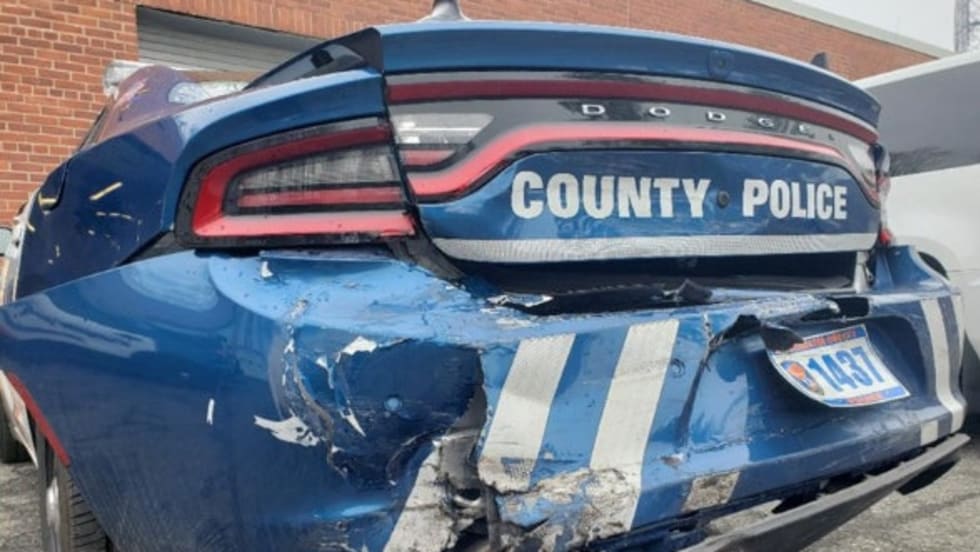A suspected DUI driver rear-ended a Westchester County Police Department patrol vehicle early Sunday morning, injuring the officer inside.