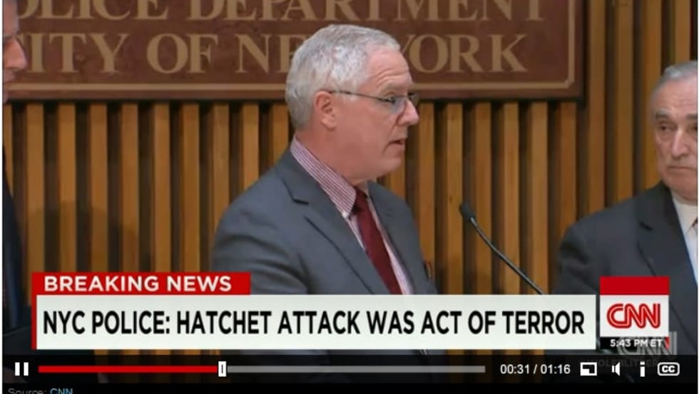 A broad-daylight hatchet assault on a group of New York police officers -- leaving one critically injured with a head wound -- was carried out by a self-radicalized convert to Islam in what officials Friday termed a terrorist attack.