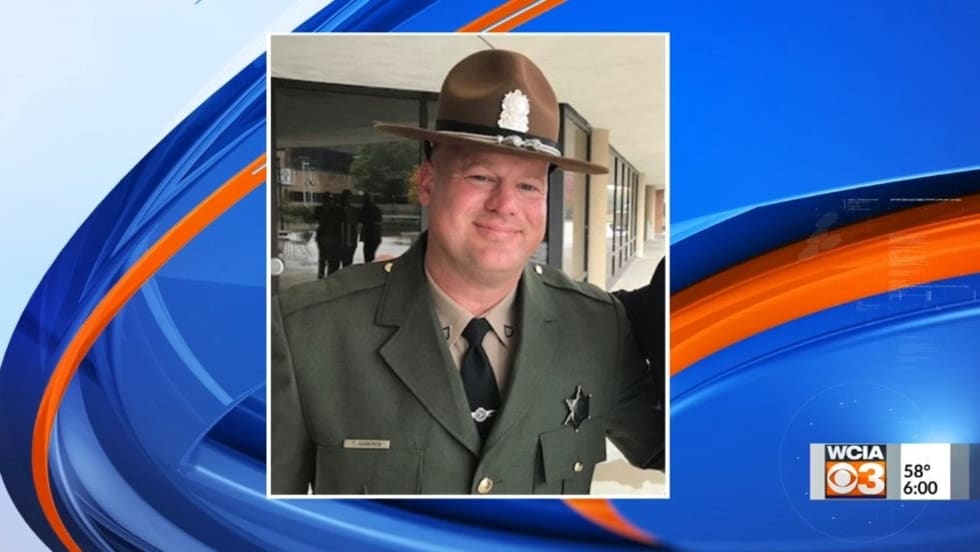 Trooper Todd Hanneken was westbound on Route 10 when his squad car left the road. His car hit a light pole and then a tree.