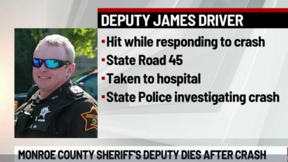 According to Indiana State Police, Deputy James Driver was traveling south on North State Road 45 when a 2006 GMC truck and trailer driven by Christopher Derr, 22, of Monticello, Illinois, was traveling north and attempted to stop but lost control, hitting Driver’s police cruiser.