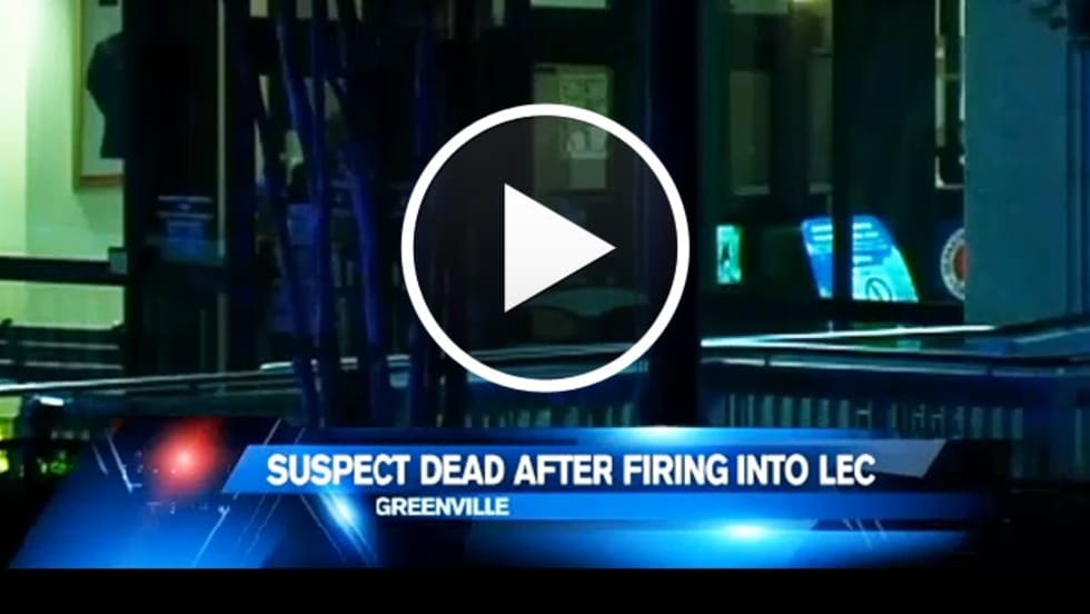 Police say a homicide suspect fired shots into the Greenville (S.C.) County Law Enforcement Center before shooting a Greenville police officer then turning the gun on himself Monday night.