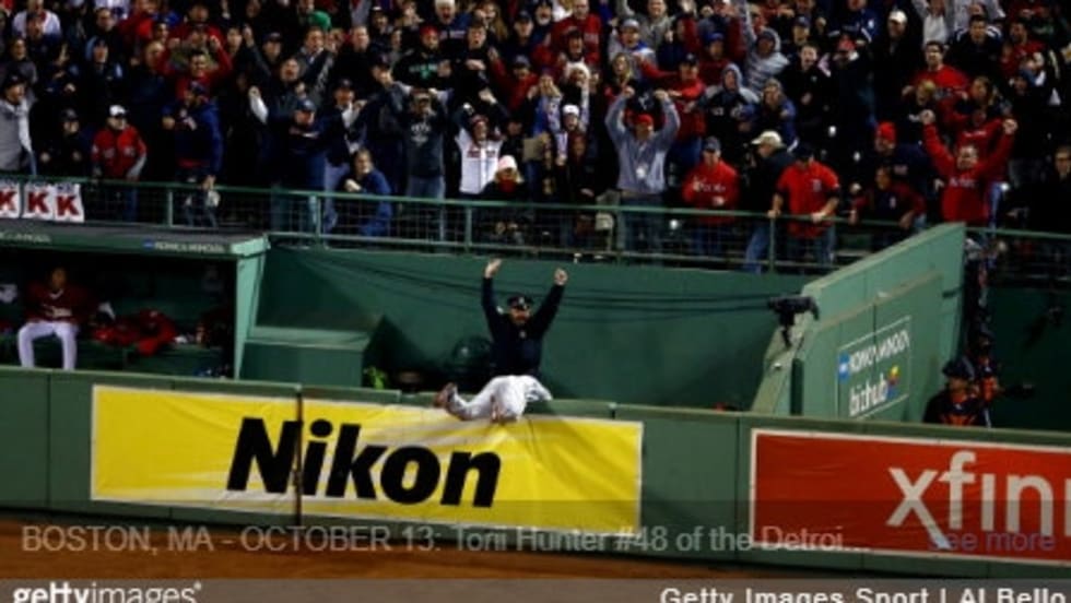 One of the most iconic images of the 2013 baseball playoffs is when Detroit Tigers outfielder Torii Hunter went head-first into the Red Sox bullpen aiming to snag a home run ball hit by David Ortiz, and Boston Police officer Steve Horgan raised his fists in jubilation when the ball eluded Hunter's glove.