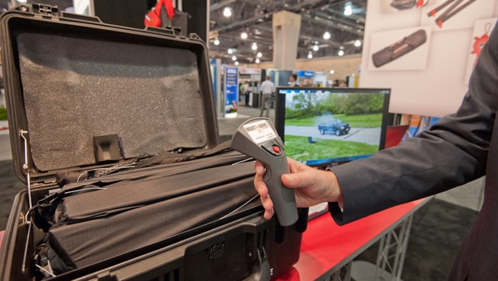 The Night Hawk offers an airbag-like launching system that propels a string of tire deflation sticks into a roadway, allowing the officer to remotely deploy the sticks from as far as 100 feet away.