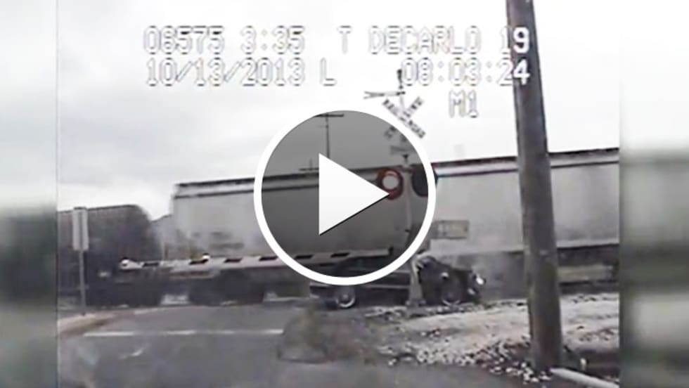 A woman fleeing officers in Woods Cross, Utah, drove her car into one train and was struck by another Sunday. Miraculously, she suffered only minor injuries and a broken arm.