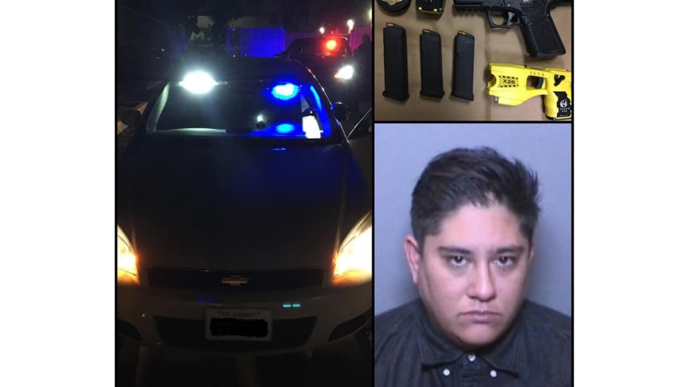 A woman who was stopped by Costa Mesa (CA) Police because her Chevy Impala had an unauthorized light bar and "CA Exempt" license plates was arrested early last week for impersonating a police officer.