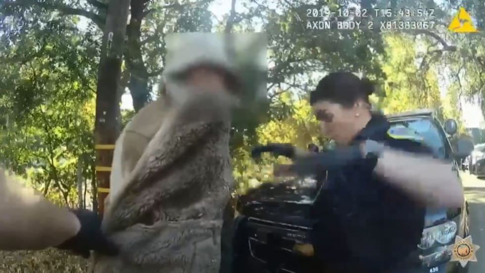 An officer with the Chico (CA) Police Department was searching a man being detained when she suffered a surprise: a lizard leaped from one of the man's pockets.