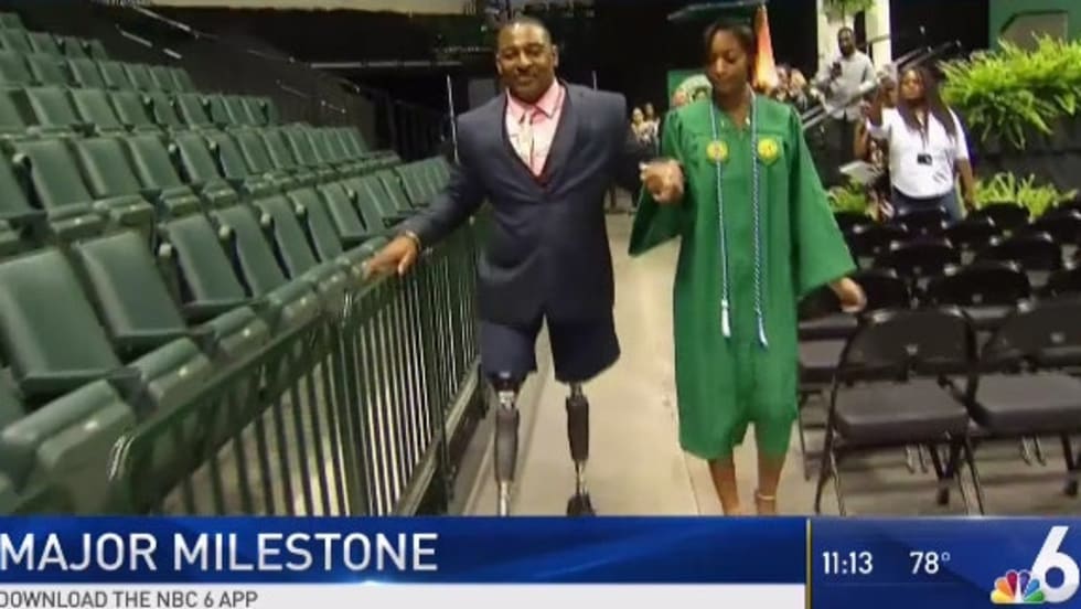 Nearly a year after a life-altering motorcycle crash, Miami-Dade police Maj. Ricky Carter walked during his daughter's college graduation on his brand-new prosthetic legs. More Here.
