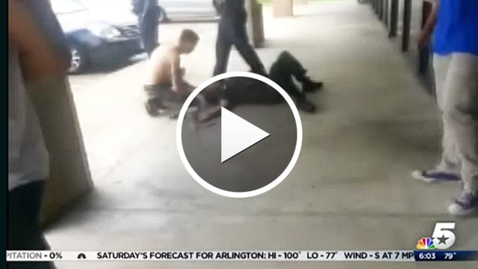 The officer said Manners "locked his legs around my body preventing my escape" and after hitting him more, "utilized his hands and forcefully grabbed my throat and strangled me."