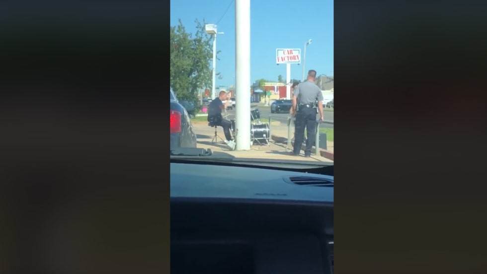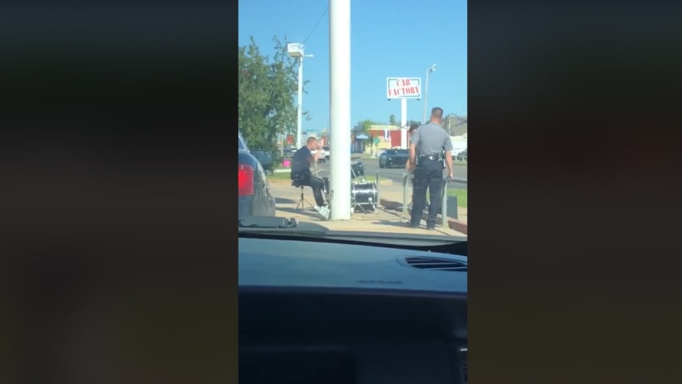 An officer with the Oklahoma City Police Department who was responding to a noise complaint due to an individual playing drums in front of a dwelling decided to show the neighborhood that he's not too bad sitting behind the drum kit.