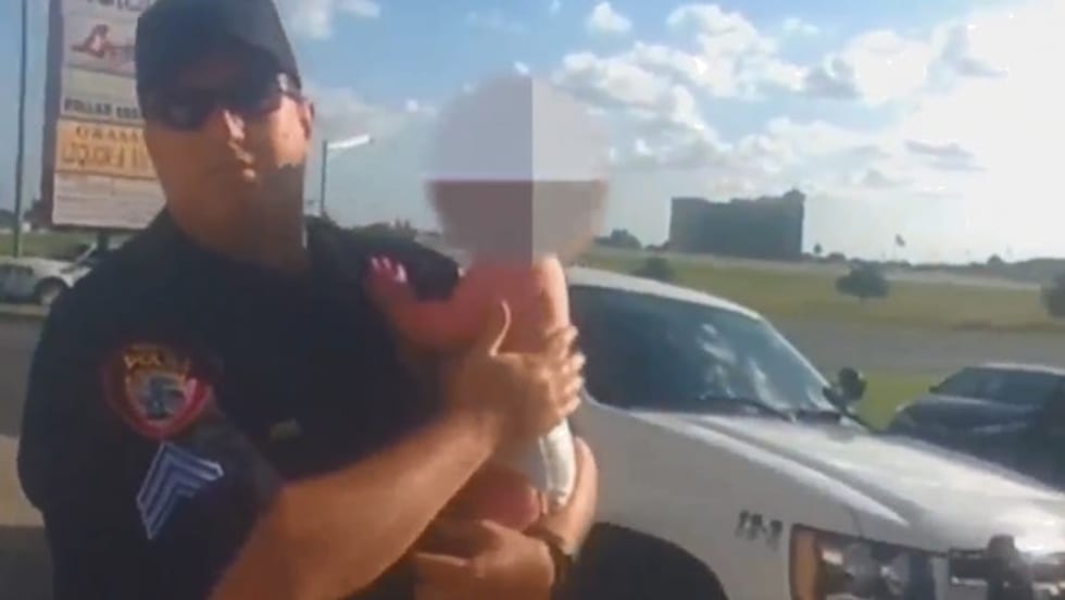 An officer with the Owasso (OK) Police Department is being praised for his actions in removing a toddler from the back of a car parked in extreme heat.