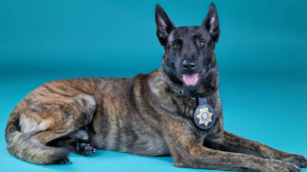"So when it came time for [Bolo] to go back that day, they got him in his cage, and he kind of dropped his head and whimpered, and everybody's heart melted, and we decided to adopt him," Chief Jason Newby says.