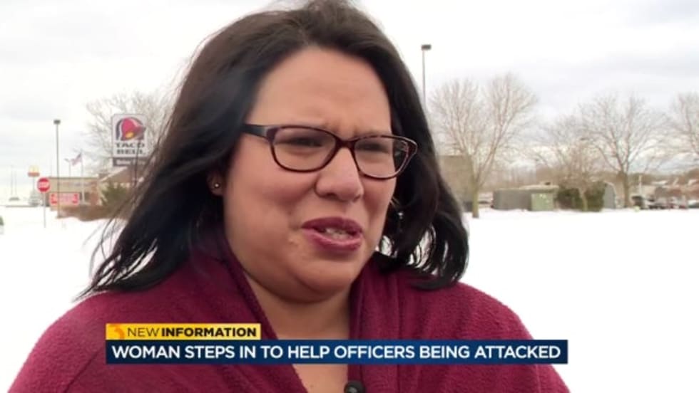 "I stood over his leg and lowered myself down a little to make sure he didn't get his foot up and kick the officer," said Erickson. "We then tried to grab his arm out from behind his back. Once we got his arms out, I asked (the officer) 'do you need me to hold his arms down so you can get your cuffs?'"